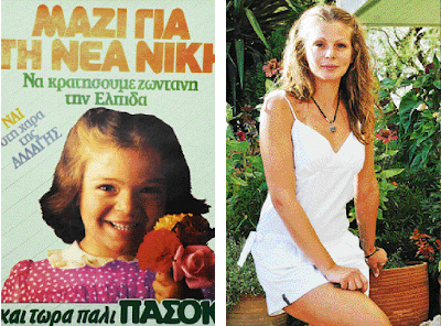 Ξανά η Αλλαγίτσα, με το αυθόρμητο, παιδικό χαμόγελο που μέσα του καθρεφτίζεται η χαρά της Αλλαγής και θεριεύει την ελπίδα. Μια αφίσα τόσο pop art, που θα έκανε τον Γουόρχολ να σκάσει από ζήλια που δεν την σκέφτηκε πρώτος. Και είχε γίνει και φαντασίωση κάθε πασοκτζή πιτσιρικά που σεβόταν τον εαυτό του (τότε οι πούστηδες του lifestyle ήταν άγνωστο είδος στην επαρχία). 9-0, με γκολ του Άντι.